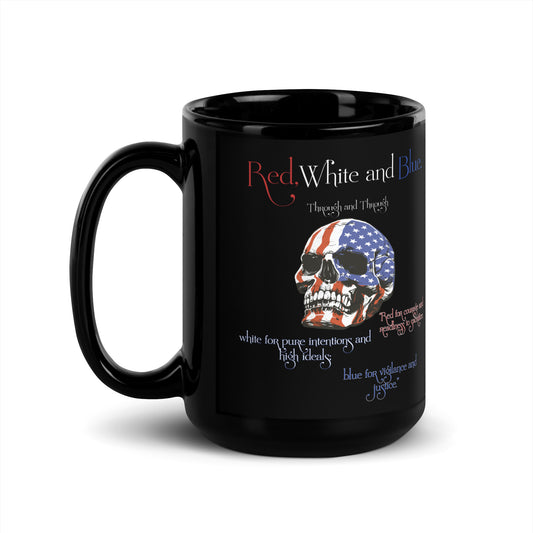 American flag Black Glossy Mug, red white and blue.