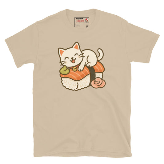 Sushi Cat T-Shirt – Kawaii Kitty on Salmon Nigiri – Cute Anime Cat Tee