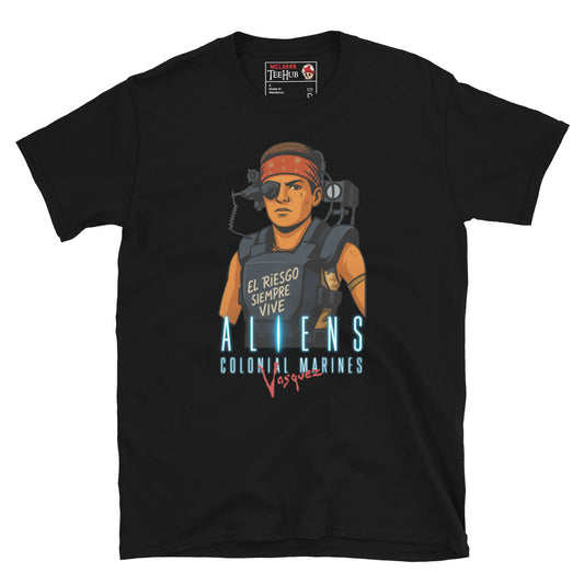 Aliens Colonial Marines Vasquez T-Shirt – El Riesgo Siempre Vive – Sci-Fi Movie Graphic Tee